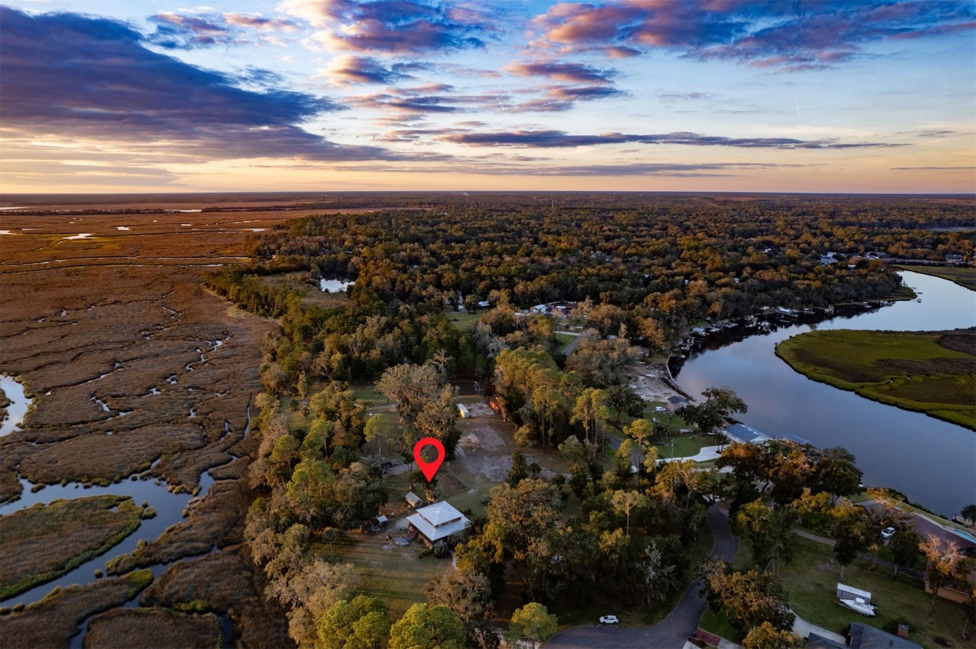 Set on more than 13 acres of marsh-front land in Yulee, this 4-bedroom, 3-bathroom property offers space, privacy, and views of the natural beauty of Lofton Creek. The home is positioned to take advantage of peaceful views and the quiet, low-country surroundings, creating a setting that feels removed while still within reach of everyday conveniences. The land is partially cleared and already functioning as an established farm, complete with irrigation and sections of fencing in place. Whether you plan to expand agricultural use, bring animals, or continue developing a homestead, the groundwork has been started. There is ample room for additional structures, gardens, workshops, or even a custom build to complement the existing home. The marsh frontage provides a dynamic backdrop with changing tides, wildlife, and open skies. This is a setting suited for those looking to live closer to nature, with opportunities to explore Lofton Creek, or simply enjoy the calm environment. With acreage this size, zoning flexibility, and existing improvements, the property supports a range of uses, from private estate living to small-scale farming or multi-generational planning. Quiet area, wide-open space, and direct connection to the surrounding landscape make this an exceptional opportunity in Yulee.